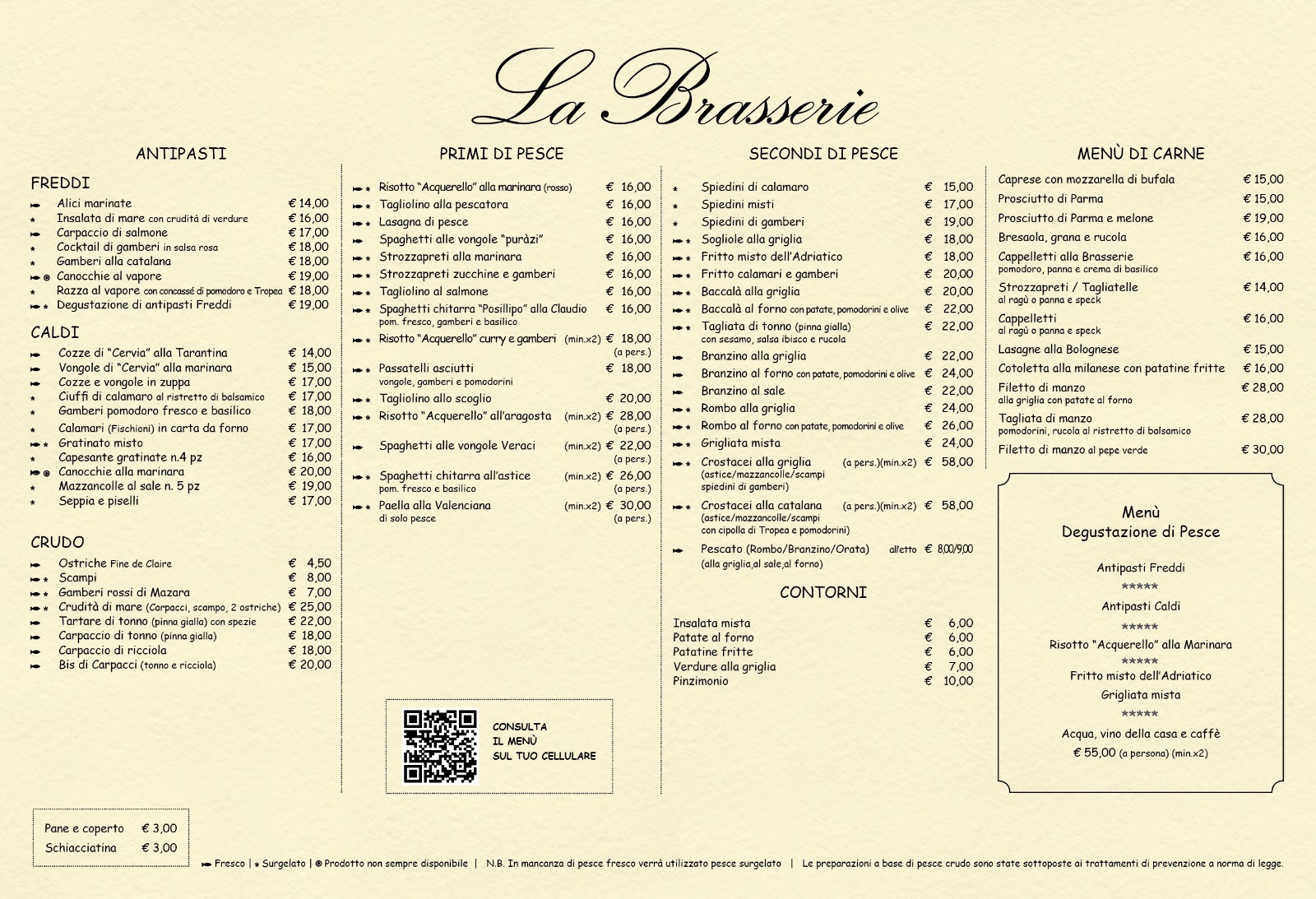 La Brasserie Borgo Marina è rinomata per il suo ricco menu a base di pesce fresco pescato nel nostro mare, l'Adriatico.